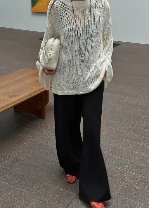 Еще одно изделие, которое можно носить круглый год, — джемпер-паутинка. Полупрозрачные трикотажные вещи уже несколько сезонов остаются трендом и пока не собираются сдавать позиции. Лучше всего смотрятся прямые просторные варианты: благодаря свободной посадке они остаются воздушными. Чтобы джемпер точно выглядел эффектно, стоит остановиться на моделях цвета шоколада или изделиях, выполненных в пастельных тонах.
