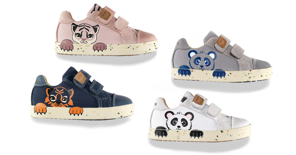 Для коллекции были выбраны натуральные цвета – темно-синий, белый, пудрово-розовый, терракотовый и глиняный. А дизайн обуви Geox задумали как идеальную возможность для родителей поговорить с малышами о защите дикой природы. Так, некоторые модели украшены надписью «We are wildlife», а на других нанесены изображения исчезающих животных – леопарда, тигра, большой панды и носорога. «Посмотрите, как они прекрасны, и будьте относитесь бережно к окружающему миру», – так звучит послание дизайнеров марки к детям.