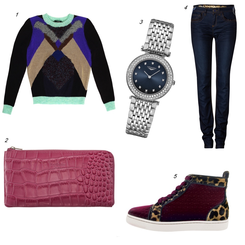 Неожиданная интерпретация спортивной обуви от известного затейника Кристиана Лубутена изначально задает высокую планку всему наряду, даже если это привычный тандем «джинсы – джемпер».