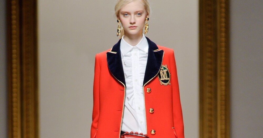 Красная «шинель», туфли с бантами, белая сорочка с жабо и обилие блестящих деталей – пожалуй, достойным завершением наряда в стиле «торжественного милитари» станет только орден почетного легиона – или пара массивных золотых серег.