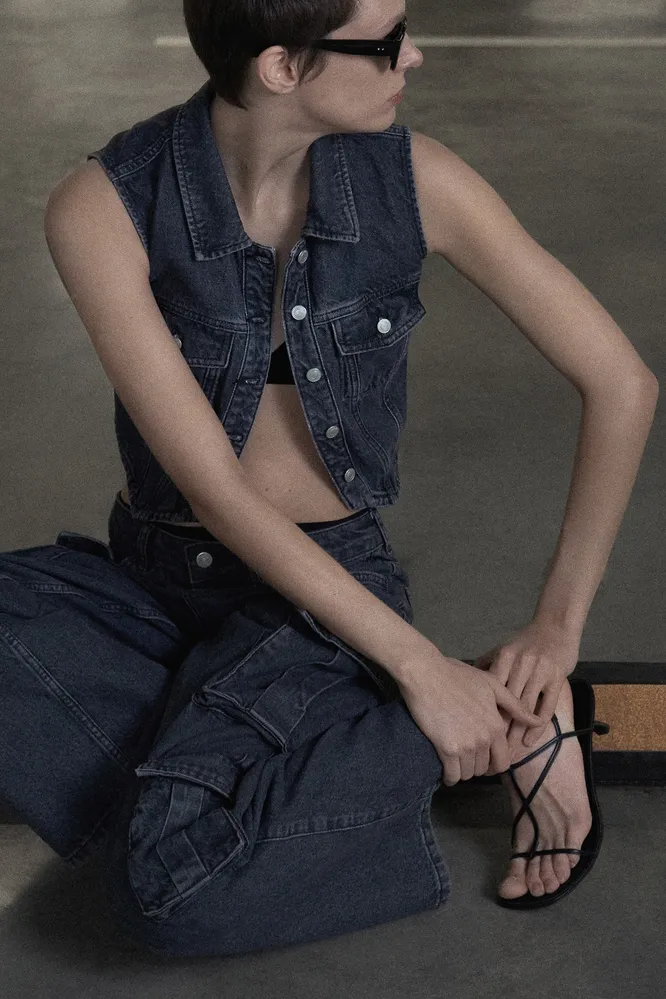 Ключевыми позициями линейки стали брюки карго, боди и топ в корсетном стиле, рубашка и юбка с накладными карманами, лонгслив с эффектом спущенных петель, а также комплект из черного денима. Контрасты и многослойность — основные приемы стилизации нового дропа. Современные героини стритстайла носят брюки карго в паре с с корсетными топами или классическими рубашками, а укороченное худи — с мини-юбкой.