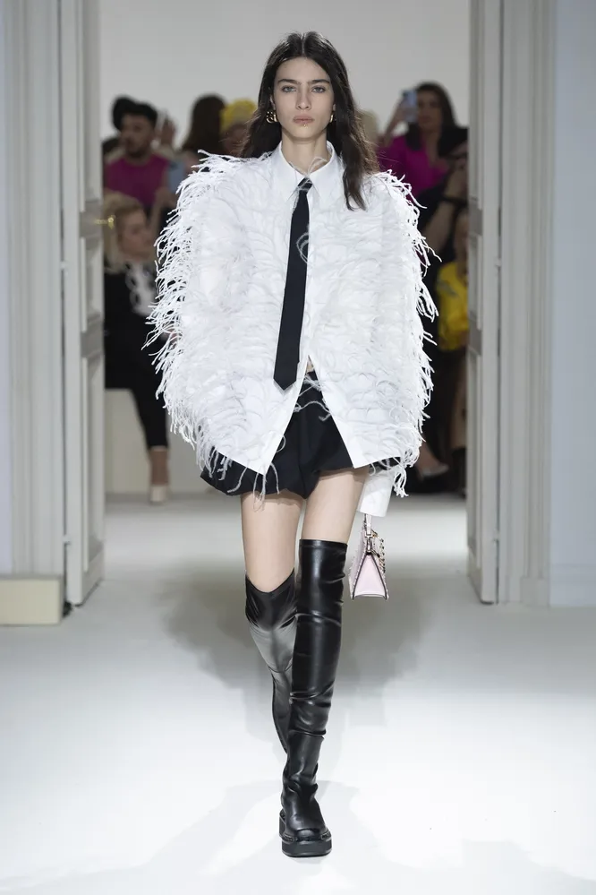 Шестой день Недели моды в Париже завершил показ Valentino. Мы привыкли к тому, что показы креативного директора Пьерпаоло Пиччоли становятся одой ярким цветам и блеску, но на сей раз коллекция получилась исключительно лаконичной — как и у многих брендов в этом сезоне. Дизайнер рассказал, что вдохновением для новой линейки стала 15-летняя дочь. Однажды, собираясь на встречу, она надела его костюм и галстук. Обычно Пьерпаоло не носит такие аутфиты и хранит их только для торжественных выходов. Именно эта ситуация заставила его задуматься о том, что значит строгий дресс-код в 2023-м.
