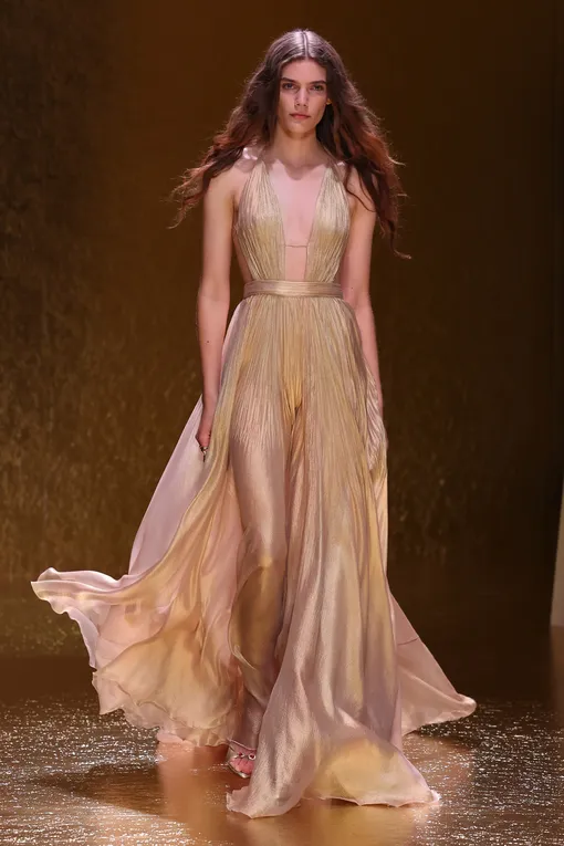 Ну и, конечно, отдельного упоминания заслуживают материалы. Наряду с золотом и металликом Roberto Cavalli делает ставку на прозрачные ткани, такие как шифон, органза, фатин или сетка. И мы уже не первый раз видим их в коллекциях брендов, поэтому готовьтесь к тому, что следующей весной многие изделия будут выполнены как раз из таких.