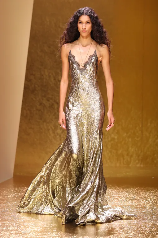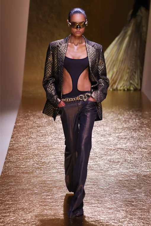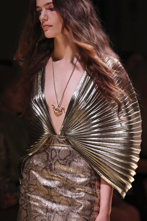 Змеиный принт — безоговорочный фаворит этого сезона, и, судя по показу Roberto Cavalli, не потеряет актуальности и грядущей весной. Однако привычную серую и зеленую цветовую гамму сменила роскошная интерпретация: узор чешуи оживает на золотых и металлизированных тканях. Рассказываем, как интегрировать этот тренд в повседневные аутфиты, чтобы образ получился не вычурным, а эффектным.