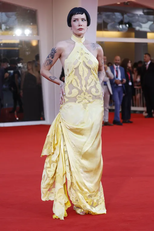 Один из самых ярких выходов шестого дня — появление на красной дорожке певицы Холзи. Она выбрала шелковое платье в самом трендовом оттенке года — тоне сливочного масла. Еше одна актуальная деталь макси Nicol & Ford — ажурные вставки.