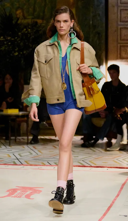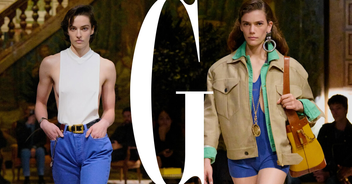 Лейтмотивом коллекции стали топы с американской проймой в духе 1980-х. Их особенность — узкая передняя часть: некоторые изделия едва прикрывали грудь моделей. Мы и так регулярно носим подобные вещи, но, кажется, в теплые месяцы 2026-го они превратятся в один из главных трендов. Важная деталь: теперь они должны стать частью многослойных образов. Versace срифмовали их с лонгсливами, рубашками и другими топами.