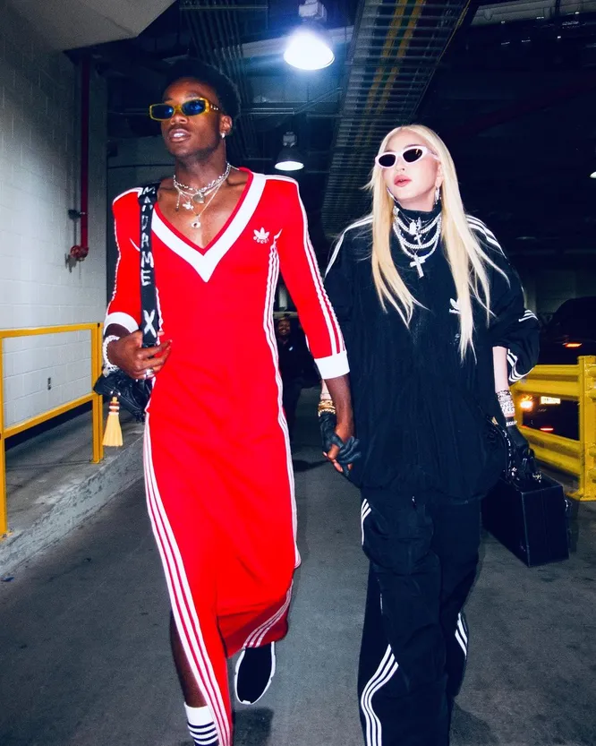 На публике Мадонна и ее сын появились в ярких образах. Дэвид надел красное платье из коллаборации Adidas x Gucci с большим разрезом на ноге, а его звездная мать выбрала костюм из коллаборации Adidas x Balenciaga и тоже выглядела очень эффектно. Впрочем, на этот раз все внимание было приковано к наследнику певицы. В Сети отметили, что Дэвид затмил свою мать.