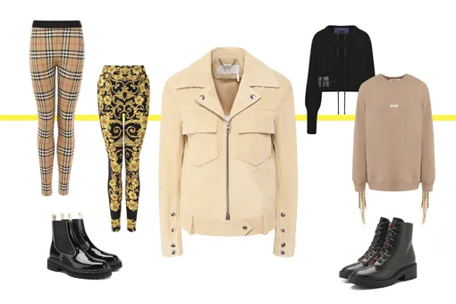 Конечно, кожаные куртки созданы, чтобы бороздить вселенские просторы на байке, вцепившись нежно во впереди сидящего красавчика с татуировками. Поэтому в день, когда вам хочется безумств, носите свою ванильную красавицу с легинсами и толстовкой.