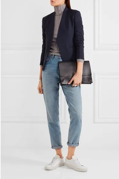 Строгий жакет, который сделает весь этот casual образ более серьезным и собранным.
