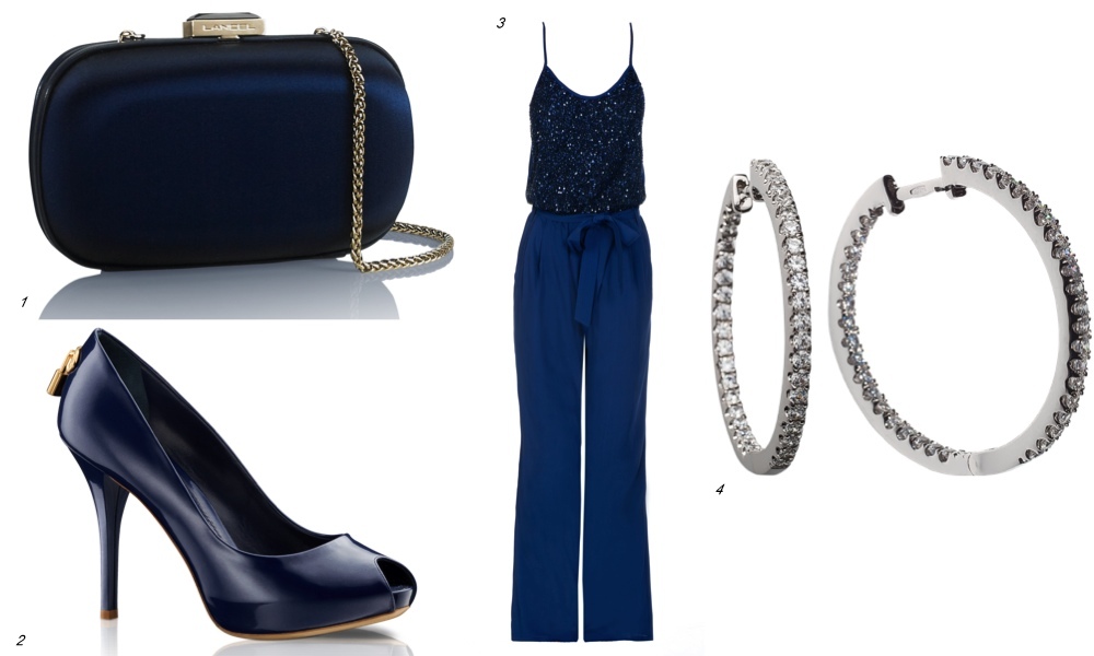 1/ Сумка из металла и атласа, Lancel, 18 000 руб., Lancel; 2/ Туфли из лакированной кожи, Louis Vuitton, 24 600 руб., Louis Vuitton; 3/ Комбинезон из полиэстера, Pinko, 15 450 руб., Pinko; 4/ Серебряные серьги с фианитами, Style Avenue, 6860 руб., Style Avenue