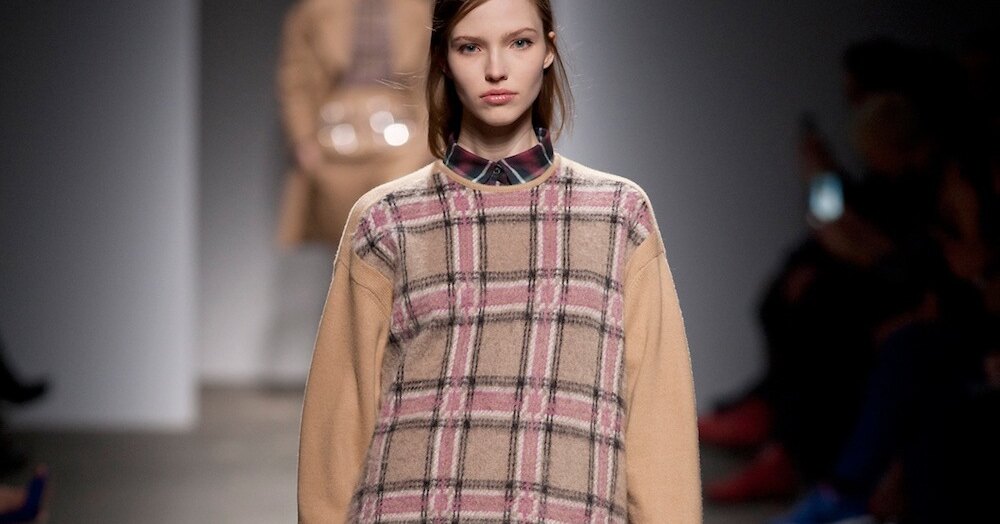 Уютный клетчатый джемпер, строгая юбка-карандаш, сорочка в стиле гранж и «графичные» туфли – эклектичный образ с блеском завершит сдержанный аксессуар.