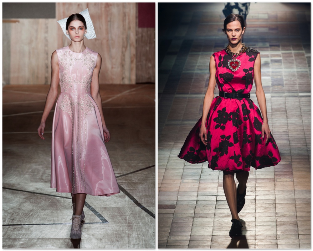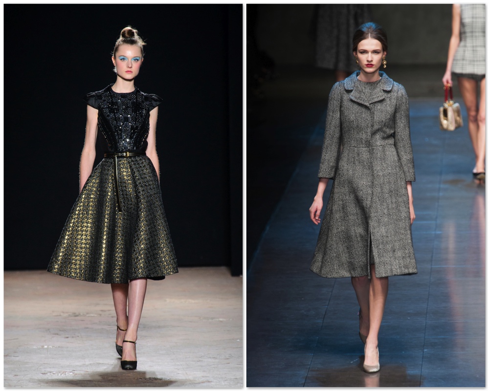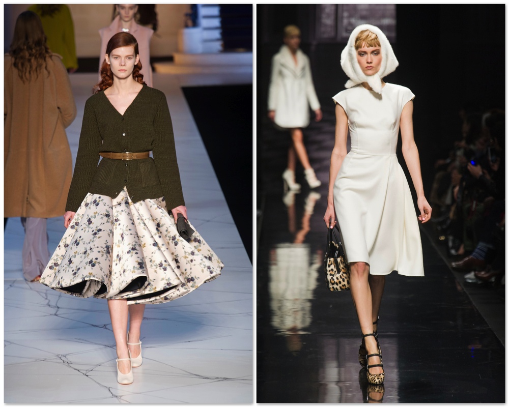 Силуэт с акцентом на талии, возвращающий нас в 50-е, прямиком в объятия Кристиана Диора, снова на пике популярности.