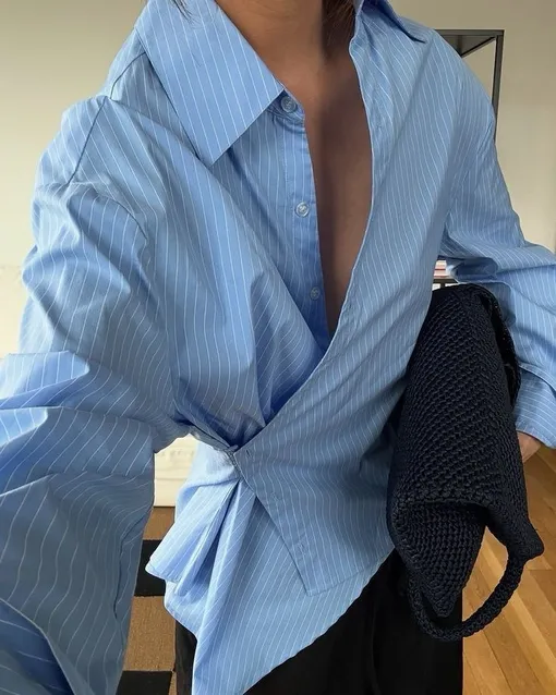 Кстати, стилизовать такое изделие проще, чем кажется на первый взгляд. Достаточно срифмовать его с прямыми брюками или джинсами на высокой посадке, буткатами, юбкой-карандаш любой длины. Поверх такой рубашки можно накинуть оверсайз-жакет.