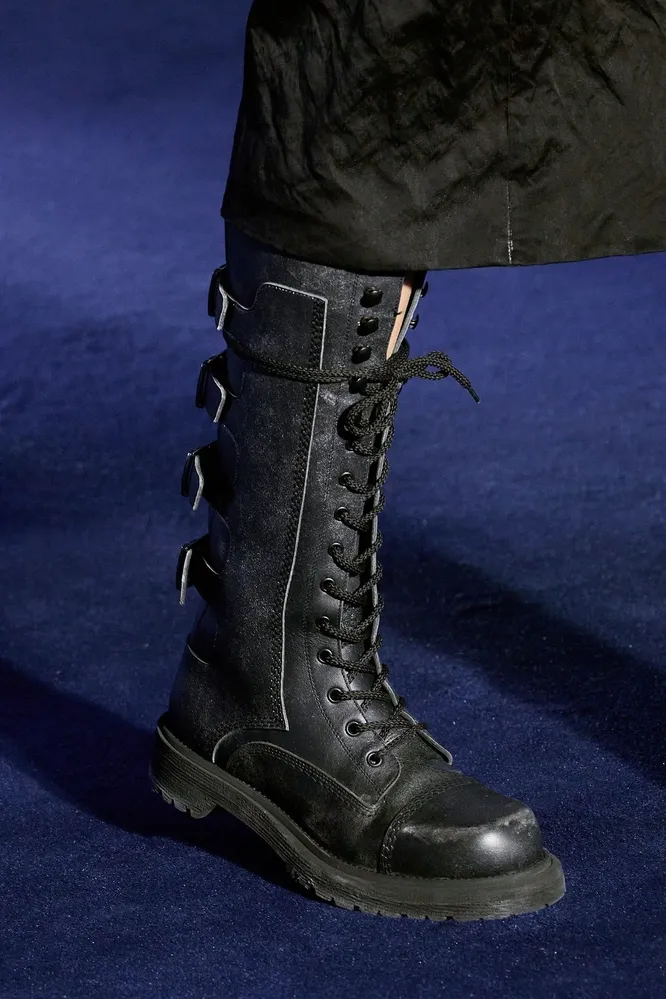 Этой зимой самой модной обувью стали ботинки на шнуровке, которые заканчиваются выше щиколотки. Черные ботинки в классическом стиле — беспроигрышный выбор, который легко впишется в любой образ. К тому же этой зимой они куда более актуальны, чем яркие пары. Но существует и альтернатива: модели темного шоколадного цвета с холодным подтоном. Главное, избегать теплых коричневых оттенков, приближенных к рыжему.