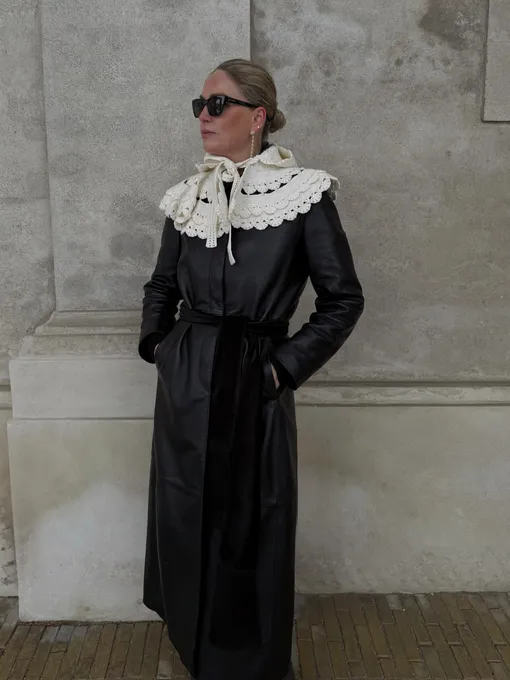 Ажурный воротник возвращается, но не как напоминание о старой школьной форме, а как самостоятельный аксессуар. Он может быть двух типов: либо очень тонкий, почти невесомый (такой аккуратно набрасывают на плечи), либо, наоборот, крупный по размеру, плотный, с выраженным рисунком, например цветами. С палитрой определиться не так уж сложно, можно просто выбрать изделие в светлых тонах. Но так как эта деталь способна стать акцентом всего аутфита, можно рискнуть и остановиться на ярком варианте, скажем, мятном или оранжевом. Конечно, первое, что приходит на ум, — стилизация с рубашкой или пиджаком, но ажурный воротник прекрасно подойдет и к любому трикотажному верху, и к обычной хлопковой футболке.