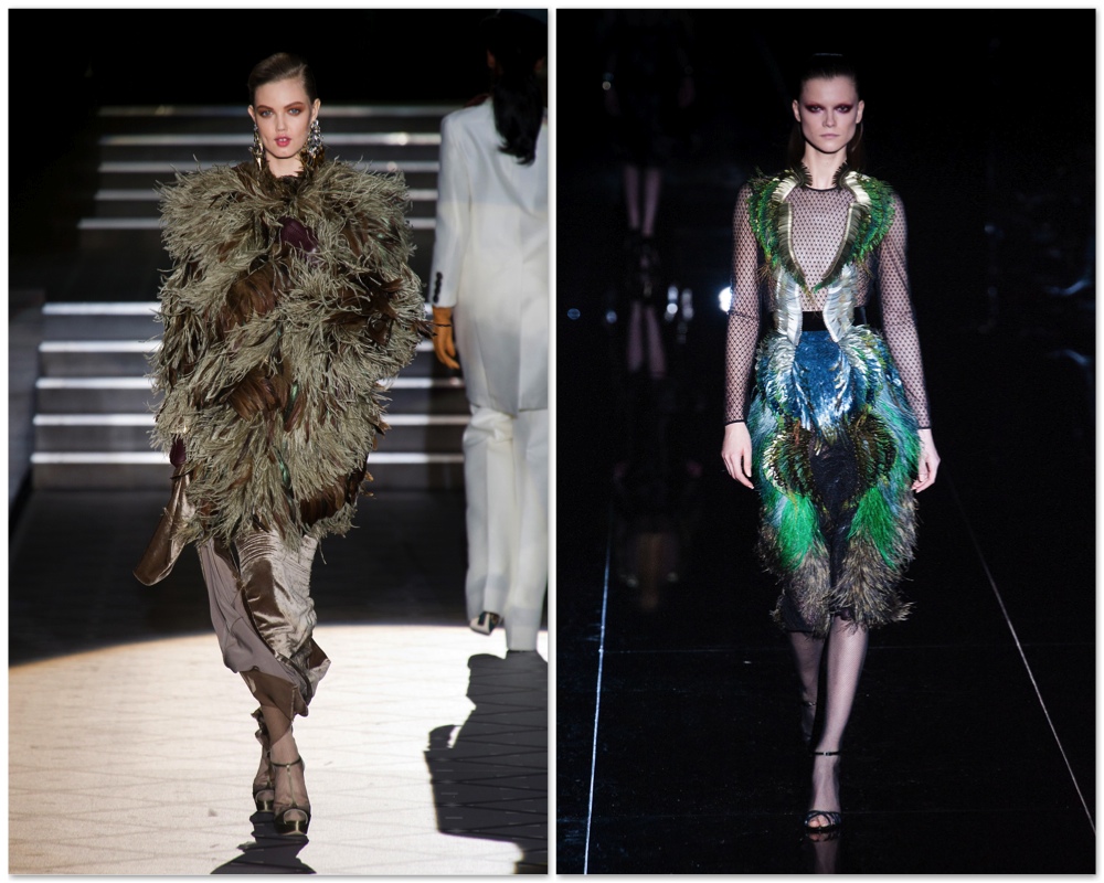 Такого обилия разнообразнейших перьев, да еще и на нарядах в совершенно разной «стилистике» мы не видели очень давно!