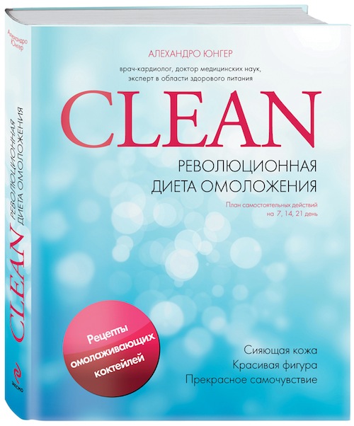 в книжный магазин «Москва»: недавно здесь появилась в продаже книга Алехандро Юнгера «Clean. Революционная диета омоложения». Система, опробованная Гвинет Пэлтроу, направлена на то, чтобы очистить организм от всего лишнего. Автор обещает не только похудение, но и оздоровление в целом.