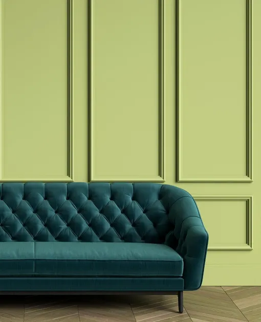 Еще один оттенок зеленого, но куда более интересный и даже немного кричащий. Это своеобразное напоминание о тренде на шартрез, который доминировал в мире дизайна в прошлом году, а также об эстетике brat. Мы советуем присмотреться к нему в том случае, если вы ищете идельный оттенок для акцентов или декора.