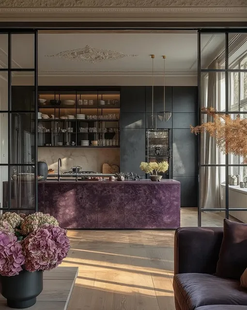 Оттенок, который напоминает нам о тренде на мрачную эстетику, которая завоевывает все больше внимания интернет-пользователей в последнее время. Но при этом у сливового в контексте дизайна интерьеров есть еще одна интересная особенность — именно этот цвет доминировал в 1990-х, так что отчасти его нынешняя популярность связана со всеобщей ностальгией.