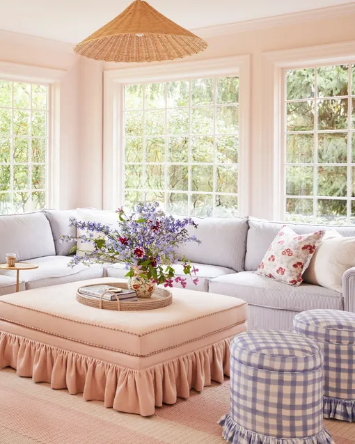 Несмотря на то, что многие интерьеры кажутся достаточно яркими, мы советуем обратить внимание, как Саммер балансирует, выбирая между насыщенным цветом или ярким принтом. В случае, когда она использует более насыщенные оттенки, принты остаются более классическими и спокойными. А вот когда дизайнер переходит к пастельной цветовой палитре, то и принтов становится куда больше, как и текстур. Вы можете смело использовать это при планировании декора.
