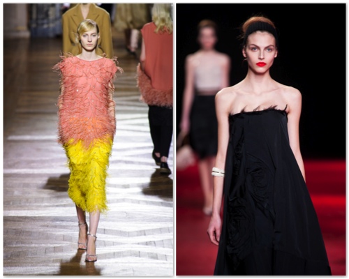 Дизайнеры удивительно тонко обыграли заданную тему, и никогда ранее перья не выглядели так элегантно, уместно и совсем не вычурно. Пока-пока-покачивать ими на шляпах уже не стоит, оставим это Анне Делло Руссо.