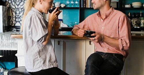 Через столик беседуют двое: мужчина с бесом в ребре и девушка со счетчиком в голове. Он ей про Кафку, она ему про кашку, он ей про творчество Мопассана, она ему про мопса, который мимо пробежал. Он откашливается и напевает: «Я спросил у ясеня...» – она вежливо поправляет: «Не у ясеня, а у Яндекса!» Они поговорили обо всем. Дошли до дна. «И как вам Горький, "На дне?" – спрашивает ее мужчина, пролистывая меню. "На дне всегда горько, сливки-то наверху, а вы попробуйте их размешать, вкуснее получится", – отвечает она. И ведь если присмотреться, нет у них никакого расхождения во взглядах. Он счастлив своим умом, она – привлекательностью.