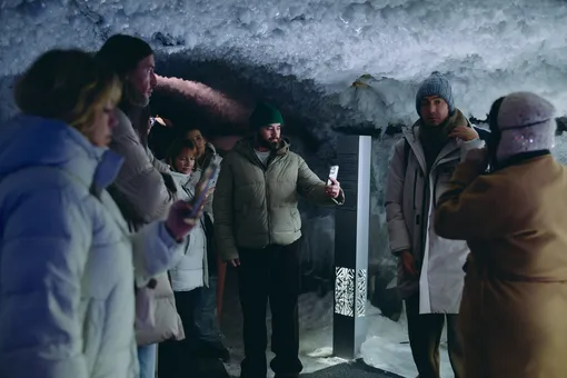 Об этом позаботился BAON, который уже на протяжении многих лет поддерживает статус эксперта в верхней одежде. Мы были в пуховиках из новой коллекции бренда ICON, созданной специально для покорения российских просторов (каждая модель носит название, вдохновленное географическими объектами страны: например, Томтор — расположенный в Якутии полюс холода северного полушария). С задачей пуховики справились на ура — было комфортно, хотя мы провели в пещере около часа (а кто-то даже посидел на ледяной кровати).