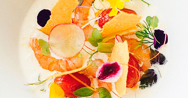 Салат из бурраты с красными креветками и помидорами конфи можно назвать символом южной Италии. Все его составляющие — продукты, характерные для этого региона. Красные апельсины, красные креветки, сыр буррата, из которого мы используем самую вкусную его часть — сливочную сердцевину, томаты конфи сорта datterini, выращенные на склонах Везувия... Последние, вероятно, в России не так легко найти, поэтому их можно приготовить самостоятельно. Сорт помидоров, пожалуй, придется поменять, но в целом вкус будет близок к оригиналу!