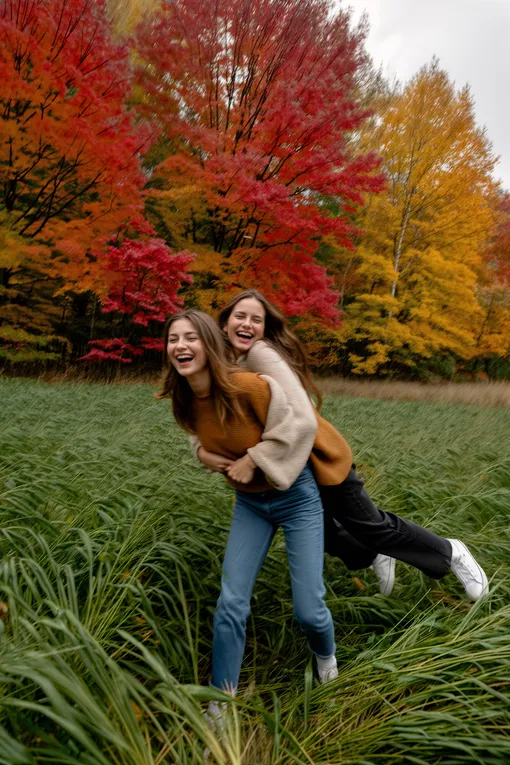 В этом случае вам тоже понадобятся референсы. Выберите общую канву съемки: вы с подругами можете примерить сочетающиеся друг с другом образы или наоборот — максимально контрастные. Например, осенью особенно актуальны фотосессии в эстетике dark academia (проще говоря — в классических образах, напоминающих те, что носят ученики знаменитых европейских университетов) или отсылающие к скандинавскому стритстайлу — ярким, но при этом уютным лукам. Не бойтесь смелых экспериментов с цветами: образы в ярких оттенках будут отлично контрастировать с осенними пейзажами или лаконичными интерьерами студий и ресторанов.