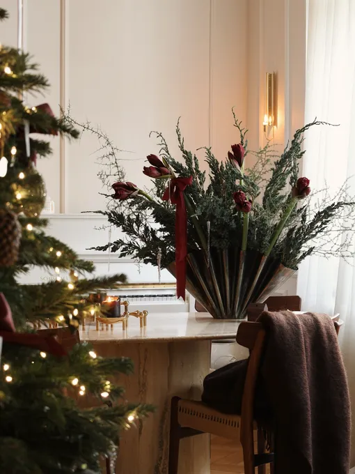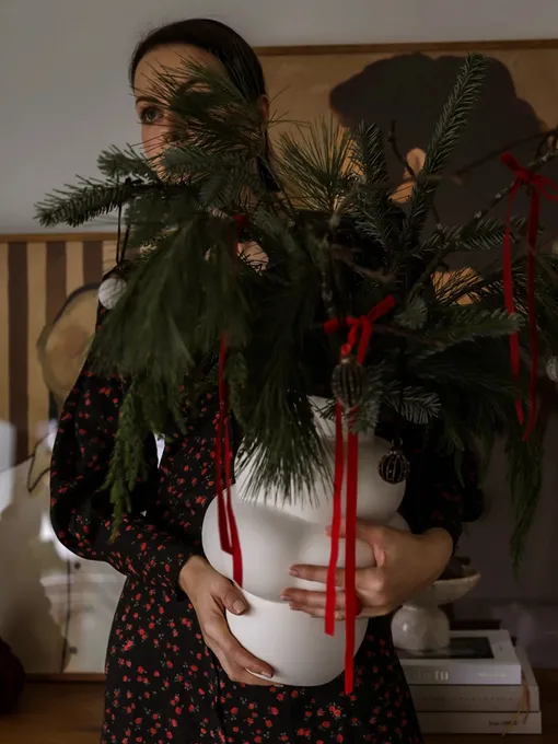 На праздничных фотографиях большая пушистая елка выглядит изумительно, но в реальности живое дерево очень прихотливое, требует внимания и к тому же занимает много места в доме (еще и найти подходящий уголок — задача со звездочкой!). Хорошая новость: один из трендов в новогоднем декоре и флористике — отказ от классической ели в пользу других креативных решений. Каких — разбираемся вместе с Анастасией Попелышевой, основательницей цветочной мастерской Bisou.