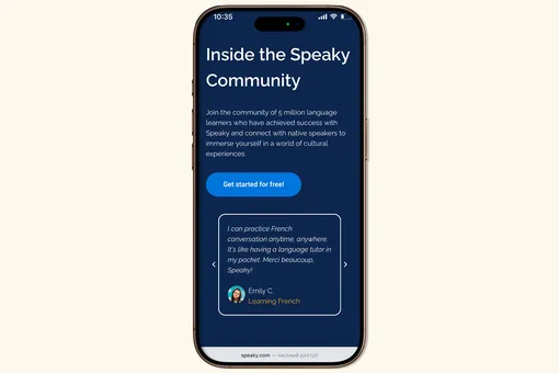 В Speaky все построено по принципу «ты — мне, я — тебе»: вы обучаете собеседника своему языку, а он помогает вам со своим. Такой формат превращает обычный чат в полноценный учебный процесс, где можно не только говорить, но и разбирать грамматику, давать комментарии и исправлять ошибки прямо в диалоге. Система подберет партнеров с подходящими целями, а чтобы поддерживать взаимность, в Speaky работает система отзывов: игнорировать запросы или вести себя некорректно не получится — это повлияет на рейтинг.