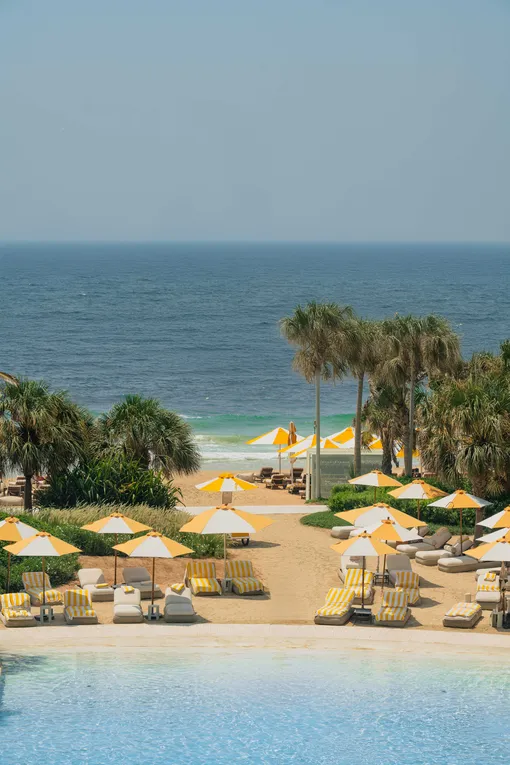 Пляжный клуб для гостей отеля доступен и для тех, кто не остановился в нем. Но не переживайте: за все дни, которые редактор провела в отеле, ситуации, когда ей бы не досталось лежака или людей вокруг было слишком много, не возникло ни разу. Дофаминовый дизайн пляжной зоны с шезлонгами и зонтами нежно-желтого оттенка автоматически поднимает настроение. А для купания предусмотрены инфинити-пул и 250-метровая береговая линия. Остаться в клубе можно на целый день: в уютных кабанах легко укрыться от палящего солнца, а в меню — свежие салаты, блюда на гриле, средиземноморская кухня и коктейли.
