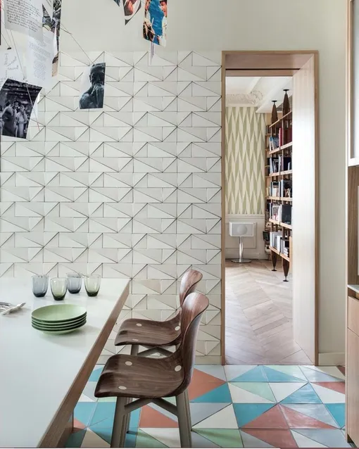 И не забывайте про плитку ярких оттенков с объемным эффектом. Она вызывает интересную оптическую иллюзию, делая все пространство более объемным. К тому же ее крайне интересно рассматривать.