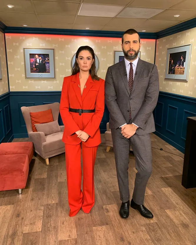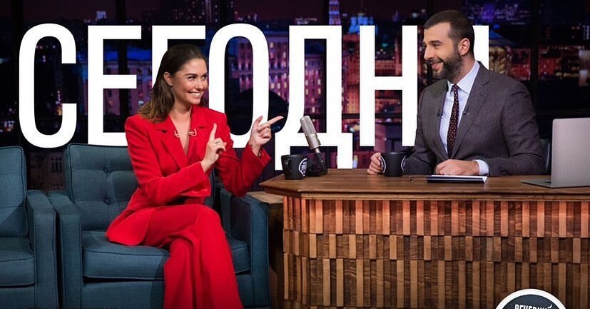 26 марта Агата Муцениеце стала гостьей шоу «Вечерний Ургант». В студии актриса и телеведущая появилась в брючном костюме алого цвета, подчеркнувшем ее безупречную фигуру, и тут же включилась в непринужденный диалог с ведущим.