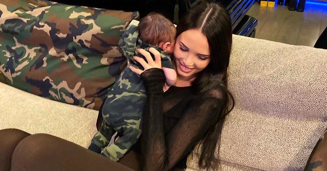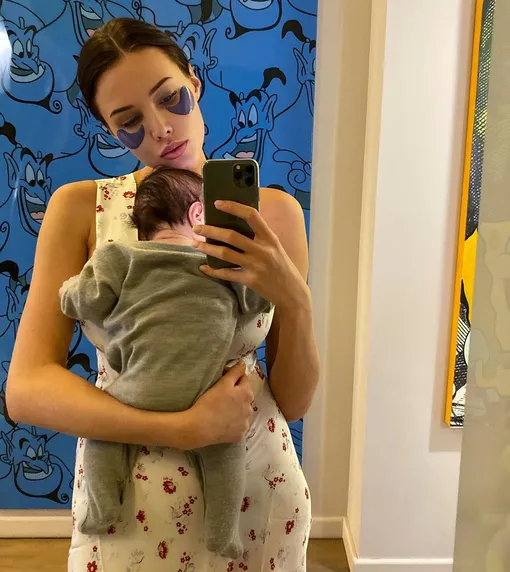 Она поделилась снимком с маленьким Ратмиром, лицо которого по-прежнему скрывает от публики. В кадре модель запечатлена с патчами под глазами и сыном на руках.