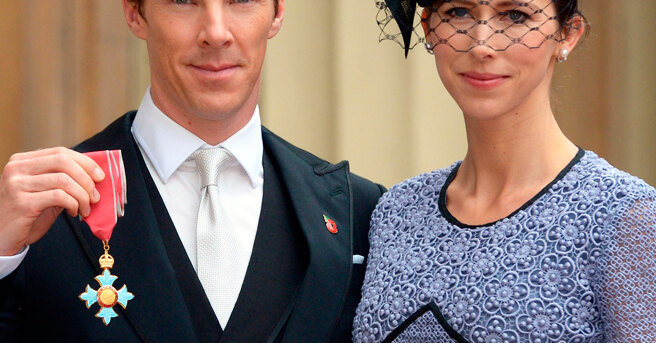 На церемонии в Букингемском дворце актера Бенедикта Камбербэтча сопровождала жена Софи Хантер.