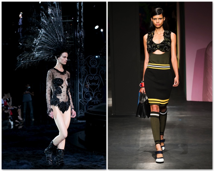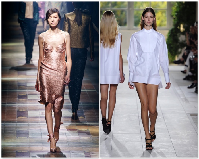 Достаточно пересмотреть показы коллекций сезона весна – лето 2014: дизайнеры выбрали главными темами искусство и феминизм. Миучча Прада использует арт-принты и военную тематику, чтобы подчеркнуть вторичные половые признаки: взгляните на явно выделенную линию груди. Минималистичные, больше напоминающие бандаж «холодные» платья Dior. Полупрозрачные туники Balenciaga, при взгляде на которые фантазия рисует женщину, которая только проснулась и надела на голое тело белую сорочку бойфренда. Эстетика садомазо и киберпанка у Louis Vuitton, просвечивающие наряды Giambattista Valli, обтягивающие мерцающие платья телесного цвета Lanvin... Не зря говорят, что мода одной из первых реагирует на все, что происходит в обществе!