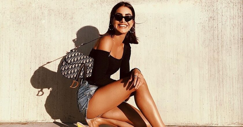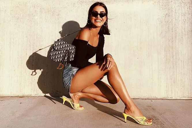 Камила Коэльо в «шоколадном» топе и с сумкой Dior показала длинные ноги