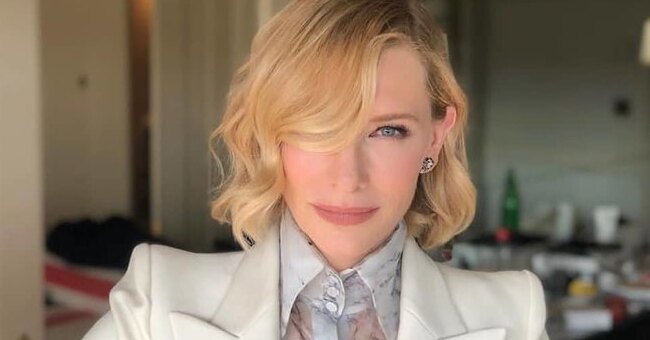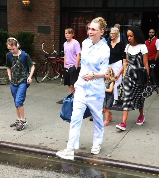 Кейт Бланшетт в «небесном» комбинезоне вывела семью на прогулку
