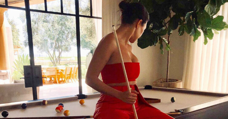 40-летняя Кортни Кардашьян порадовала поклонников новой фотосессией. Телезвезда позировала во время перерыва в игре в бильярд.
