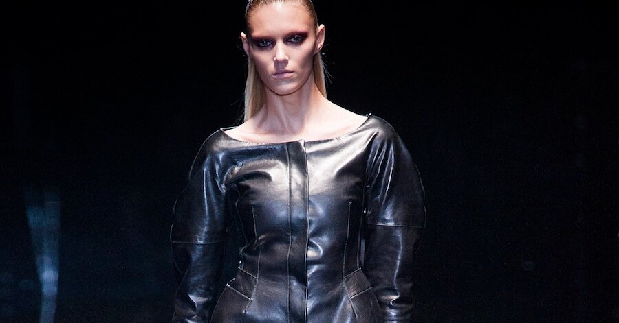 Чтобы не превратиться в героиню фильма «Красотка», носите полоску из кожи с грубыми ботинками, как предлагал Эди Слиман на шоу в Париже.
