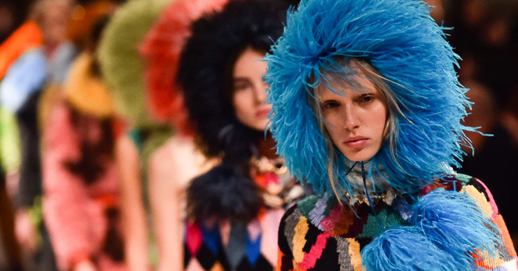 Мех, пэтчворк и страусиные перья: осенняя эклектика в коллекции Prada 2017
