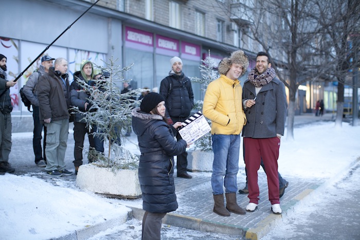 Новогоднюю атмосферу приходилось создавать в самых незимних условиях: в Алматы 500 участников акции снимались в зимней одежде и обуви при температуре +40. А в Магнитогорске съемки чуть не сорвало штормовое предупреждение: ливень и шквалистый ветер потрепал установленную на площади 25-метровую елку и успокоился лишь незадолго до первого дубля.