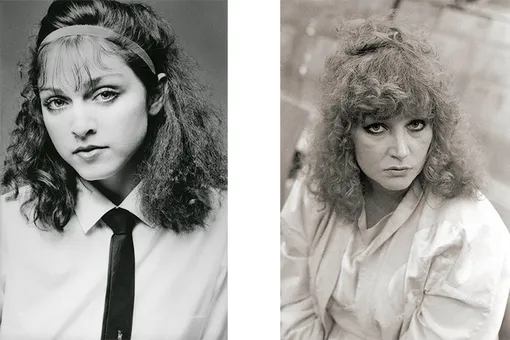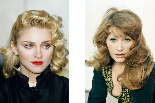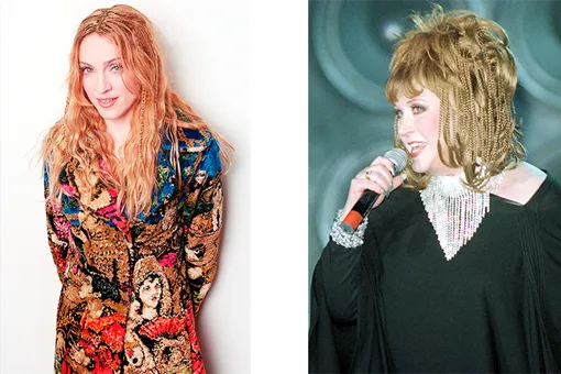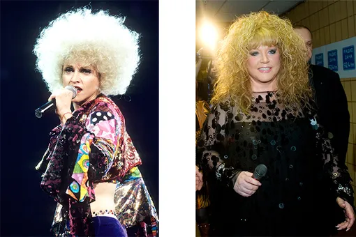 Типичную прическу Аллы Борисовны — пышную грива, прошедшую химическую завивку, — можно встретить в одном из первых этапов бьюти-эволюции Мадонны. Длина по плечи, подведенные темным глаза, а главное, уверенный взгляд в камеру, — и сходство становится очевидным, несмотря на разницу в возрасте. Еще раз впомним «восьмидесятые»!