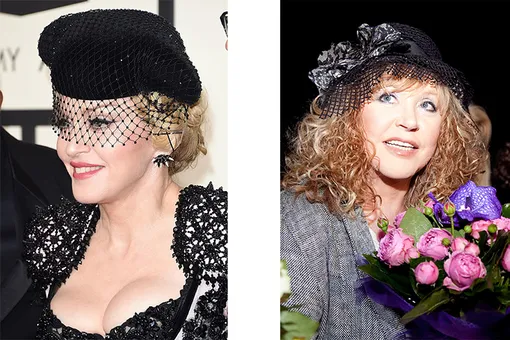 То ли лавры Диты фон Тиз не давали дамам покоя, то ли дала о себе знать неистребимая жажда экспериментов, но и Мадонну, и Примадонну можно было увидеть в шляпке с вуалью. Правда, Луиза Чикконе подошла к своему аутфиту гораздо основательнее — головной убор стал деталью образа, дополнив наряд и прическу. А вот Алла Борисовна, кажется, надела шляпку в последний момент, не изменяя любимой пышной прическе.