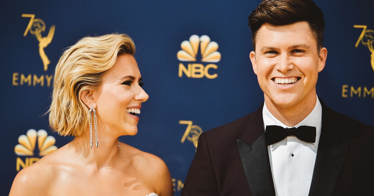Скарлетт Йоханссон, которая в последнее время нечасто выходит в свет, однако на «Эмми» она приехала, чтобы поддержать своего возлюбленного, ведущего рейтингового шоу Saturday Night Live, 36-летнего Колина Жоста.