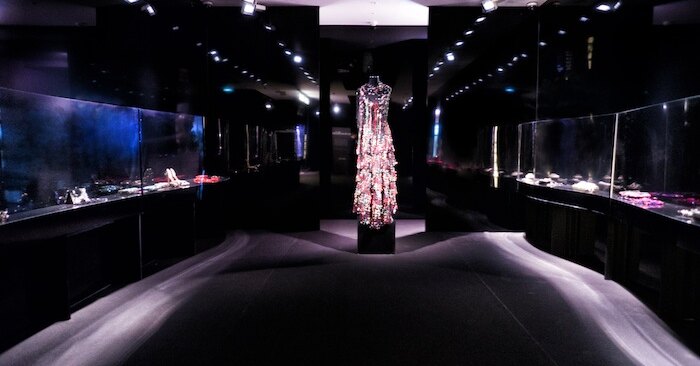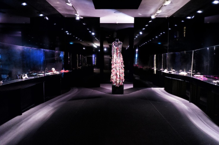 Одним из ключевых событий вечера стала презентация экспозиции Eccentrico, которая расположилась в отдельном павильоне рядом со входом в бутик. Выставка и правда заслуживала особого внимания, ведь на ней были представлены лучшие наряды, ювелирные украшения и аксессуары, созданные Джорджо Армани с 1985 года по настоящее время! Жаль только, что продлилась она всего несколько дней.